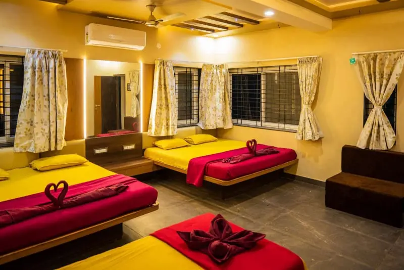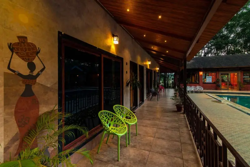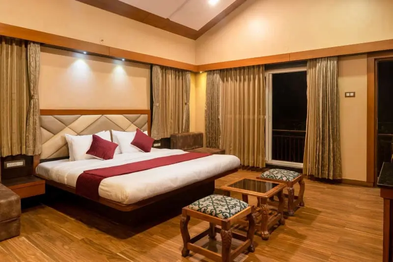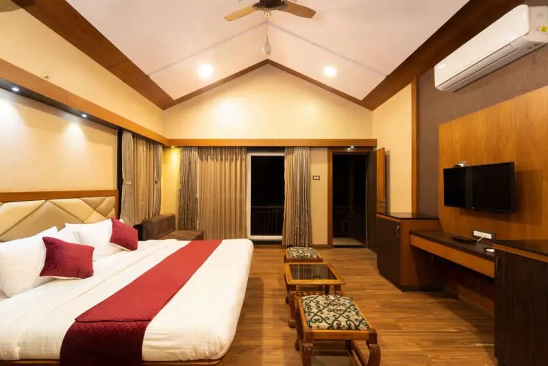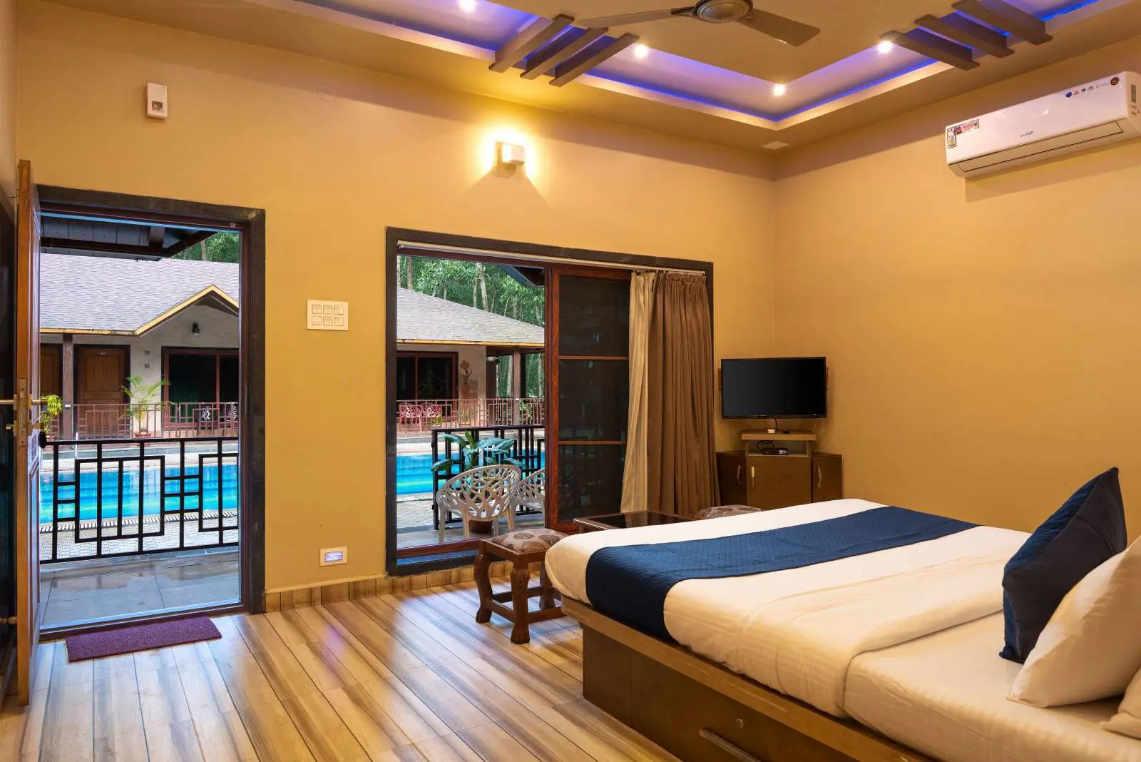 Dew Drops Resort Deluxe rooms are beautifully designed with all luxury amenities, pool views, and direct access to the swimming pool. The rooms are fully air-conditioned and spacious.